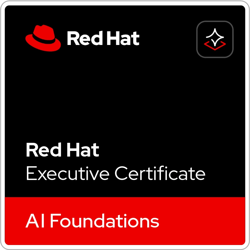 Red Hat's Executive Certificate offers a tailored learning path to help you leverage AI for business success. Focused on high-level concepts and real-world applications, it empowers you to navigate the AI landscape and make informed, data-driven decisions for your organization.