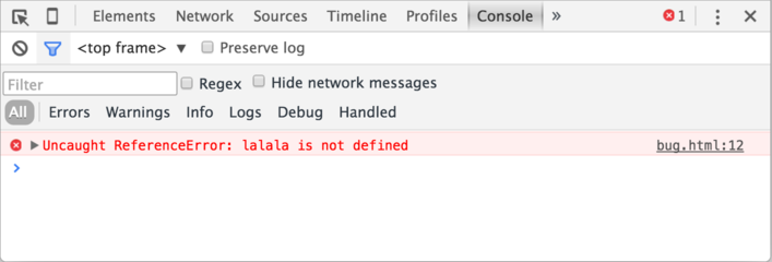 bug.html:12con il numero della linea in cui si è verificato l’errore.