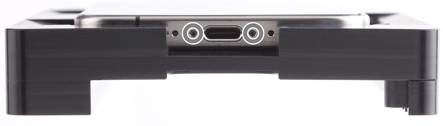 Das iPhone mit dem Display nach oben so in das Reparaturfach einsetzen, dass der USB-C-Anschluss zum Schlitz zeigt.