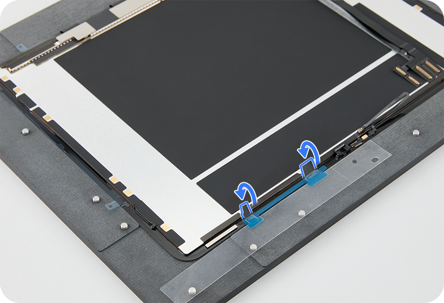 Wi-Fi + Cellular models only: Peel the two middle release liners clockwise, starting at the bottom left of the display as shown.
